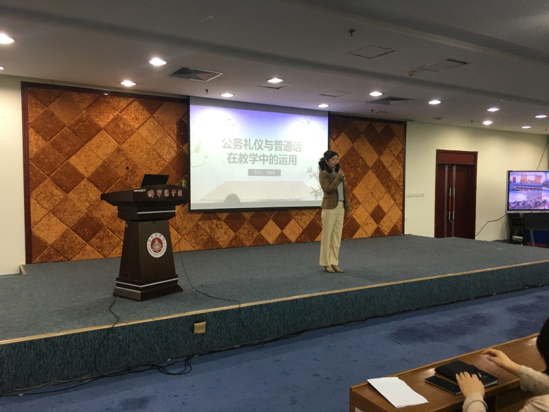 为提升广大教师教学基本能力,促进教师专业发展,10月19日,学校在太白湖校区举办教师教学基本功专题培训,邀请济宁广播电视台主持人、政务融媒服务中心运营总监张鲁娅女士做了题为“公务礼仪与普通话在教学中的运用”的教学培训,培训由教师发展中心副主任陈宁主持。