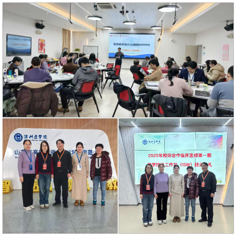 2025年12月27日至30日,由山东省高等学校师资培训中心、高校教师教学发展联盟指导,医学院校教师教学发展共同体主办的首届校际合作临床教师ISW教学技能工作坊在烟台举行,我校选派3位临床骨干教师组队参加。